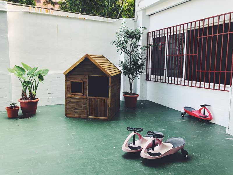 Contamos con un entorno privilegiado en la ciudad de Valencia. Rodeadas por naturaleza, las dos casas en las que se encuentran las aulas, nuestra cocina y los patios, dotan a la escuela de un ambiente súper familiar que ayuda al desarrollo en confianza de nuestra comunidad de niños.